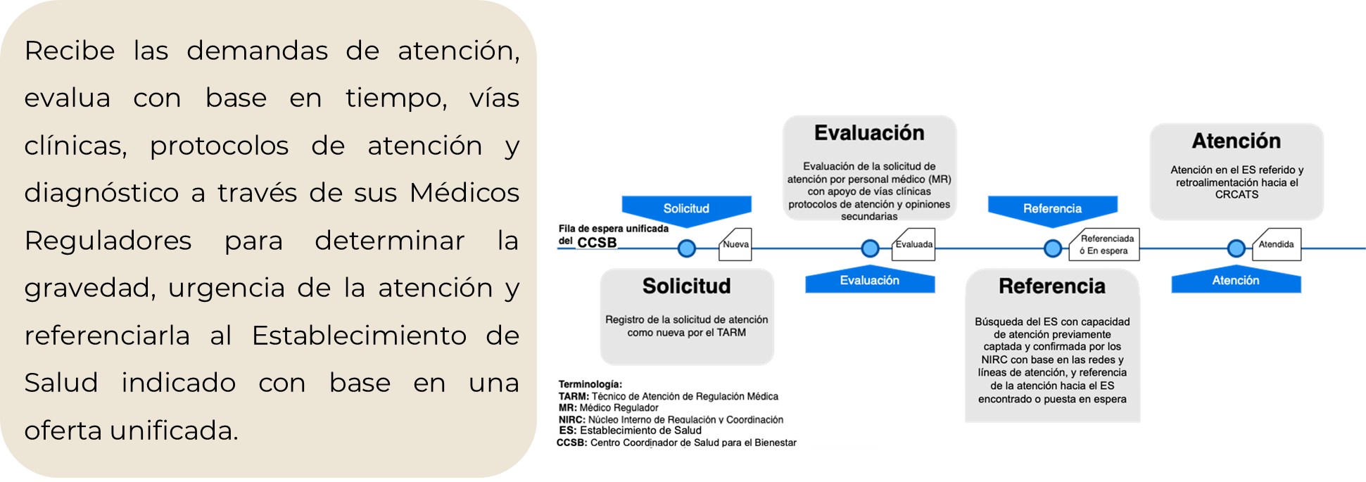 Está compuesto por los Centros Coordinadores de Salud para el Bienestar, operados bajo la rectoría de la Secretaría de Salud a través del personal del SNSP, en coordinación con los Distritos de Salud para el Bienestar (DSB) y tendrán como objetivo la operación de las Redes Integradas de Servicios de Salud.